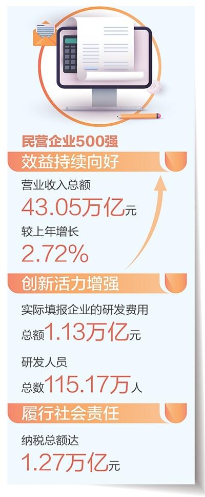 面對外部壓力加大、內(nèi)部困難增多的復雜嚴峻形勢,民營企業(yè)500強堅定不移走高質(zhì)量發(fā)展之路,專心致志做強做優(yōu)做大企業(yè),整體保持穩(wěn)中有進、穩(wěn)中向好的態(tài)勢,企業(yè)效益和核心競爭力進一步增強。