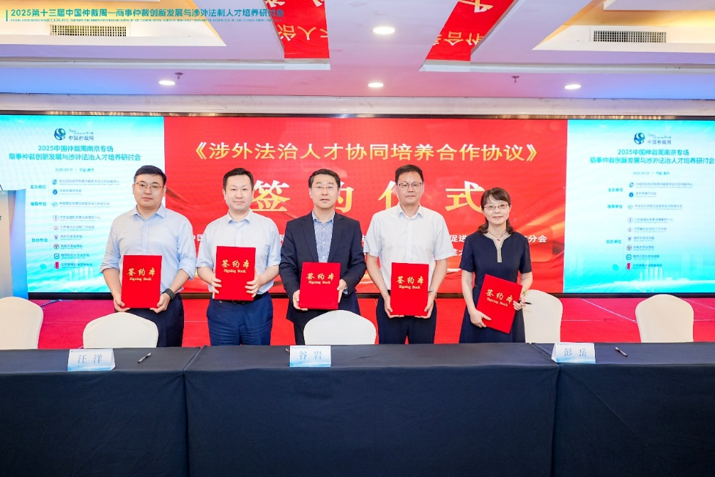 活動中,貿仲江蘇中心協(xié)同江蘇省貿促會法律部分別與南京大學法學院、東南大學法學院和南京師范大學法學院簽署《涉外法治人才協(xié)同培養(yǎng)合作協(xié)議》。