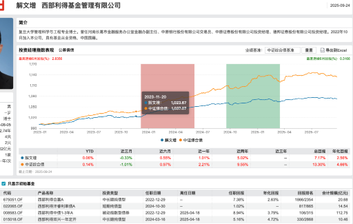 另一只西部利得灃睿利率債則自2024年10月30日開始管理,解文增對該產(chǎn)品的在管時長還不足一年;截至2025年9月24日,西部利得灃睿利率債A的任職回報(bào)為1.02%,在全市場排名處于末位5%。