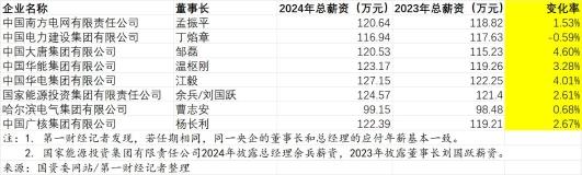 其中,中國大唐集團、中國華電集團和中國華能集團董事長的總薪資漲幅領跑,同比2023年分別上漲4.60%、4.01%和3.28%。