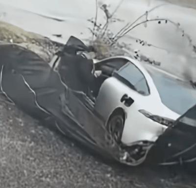 一段網(wǎng)絡視頻顯示,一輛汽車失控滑入路旁溝里,隨后冒出濃烈黑煙和火焰。車主下車后嘗試打開后車門,但車門無法從外部開啟。有人員上前砸窗,后排乘客才被救出。