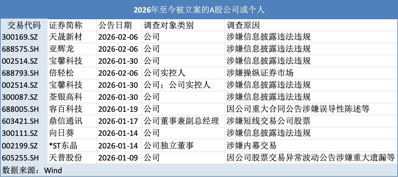 隨著資本市場(chǎng)監(jiān)管持續(xù)趨嚴(yán),2026年以來(lái),有一批A股公司被立案調(diào)查。
