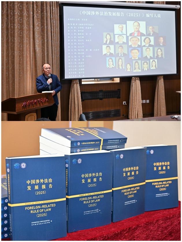 對外經(jīng)濟貿(mào)易大學涉外法治研究院常務副院長陳衛(wèi)東作工作匯報。報告系統(tǒng)梳理了2025年中國涉外法治發(fā)展重大事件,總結了我國在共建“一帶一路”、數(shù)據(jù)治理、營商環(huán)境、對外交往、反制裁、出口管制、對外貿(mào)易、涉外投資、涉外金融、反壟斷、知識產(chǎn)權、國際私法、國際商法、海商海事、國際商事爭議解決等15個涉外法治領域的主要進展與亮點,全面展現(xiàn)了我國在涉外立法、執(zhí)法、司法、法律服務和主動參與國際規(guī)則制定等方面的最新成果。