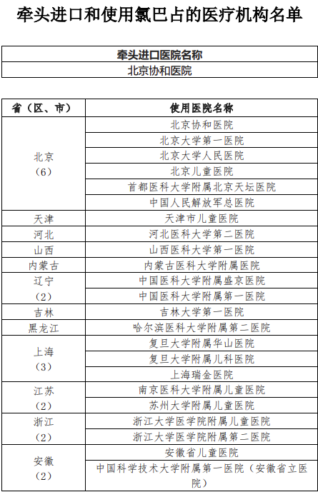 人民網(wǎng)北京6月29日電 (記者孫紅麗)為滿足人民群眾對于氯巴占等國外已上市、國內(nèi)無供應(yīng)的少量特定臨床急需藥品需求,國家衛(wèi)生健康委、國家藥品監(jiān)督管理局近日聯(lián)合印發(fā)《臨床急需藥品臨時(shí)進(jìn)口工作方案》和《氯巴占臨時(shí)進(jìn)口工作方案》(以下分別簡稱《方案》和《氯巴占方案》),發(fā)布了牽頭進(jìn)口和使用氯巴占的50家醫(yī)療機(jī)構(gòu)名單。