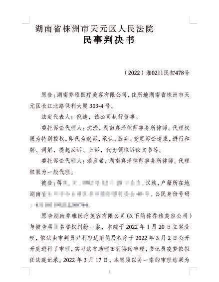 據(jù)此,法院依法作出判決,駁回美容機構全部訴訟請求。對此,美容機構沒有提出上訴,該判決現(xiàn)已生效。