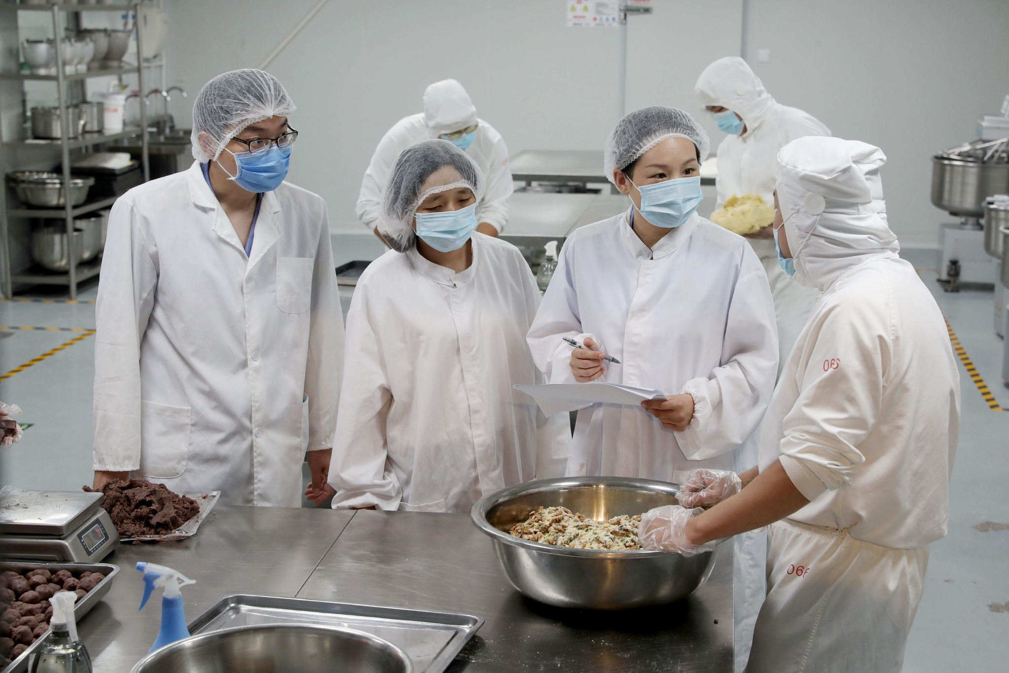 執(zhí)法人員深入月餅生產一線進行安全監(jiān)管。