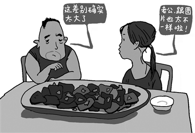 紅彤彤的烤饅頭夾龍蝦、焦褐色的炸肥腸、金燦燦的菠蘿飯……看到這些美食圖片,來(lái)自天津市河?xùn)|區(qū)的鄒楷不但沒有“打卡”的欲望,反而有點(diǎn)反胃,因?yàn)楦唢柡投鹊纳首屖澄锟瓷先ヌ倭?。和鄒楷一樣,對(duì)美食宣傳過(guò)度現(xiàn)象不理解的人不在少數(shù)。近日在多個(gè)美食推薦平臺(tái)上,有不少消費(fèi)者吐槽,其被宣傳圖片或者文案吸引,結(jié)果吃到的食物與圖文嚴(yán)重不符。(9月20日《法治日?qǐng)?bào)》)