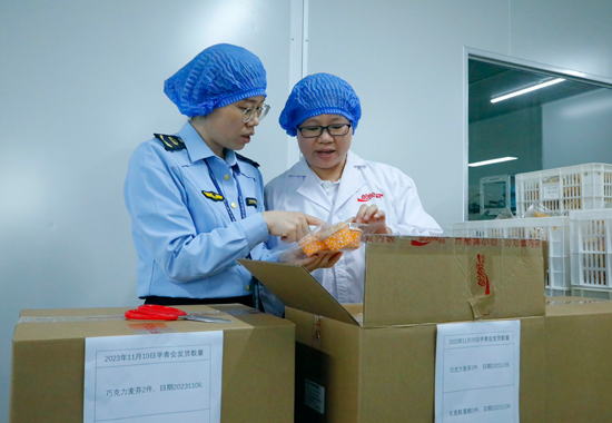 市場監(jiān)管部門駐點監(jiān)管人員聯(lián)合第三方檢驗機(jī)構(gòu)對每批次產(chǎn)品進(jìn)行抽檢。何正君攝