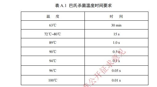 此外,明確巴氏殺菌的溫度時間要求,如溫度63—100℃,對應(yīng)的殺菌時間從30分鐘到0.01秒不等。巴氏殺菌指在有效殺滅病原性微生物的同時,產(chǎn)生最低程度的化學(xué)、物理以及感官變化的加工方法。