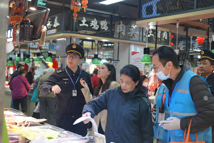 福州市市場監(jiān)管局聚焦網(wǎng)紅食品、熱銷食品,持續(xù)開展食品安全“你點(diǎn)我檢”專項(xiàng)行動(dòng)。1月下旬,該局聯(lián)合媒體深入倉山區(qū)大型商超,現(xiàn)場在蔬菜生鮮區(qū)隨機(jī)選取了迷你杏鮑菇、精選生菜、紅顏草莓、谷物飼養(yǎng)黑豬肉、肥牛卷5種食品交給檢測人員現(xiàn)場進(jìn)行農(nóng)藥殘留檢測,檢測結(jié)果顯示均為合格。執(zhí)法人員還當(dāng)場對(duì)以上商品進(jìn)行索證索票檢查,經(jīng)查驗(yàn)票據(jù)齊全。檢查過程中,執(zhí)法人員也對(duì)年糖年餅、咸蛋黃麥芽餅干、鳳梨酥、牛軋?zhí)?、甘草瓜?種年貨零食進(jìn)行現(xiàn)場抽樣。2月23日,福州市市場監(jiān)管局、鼓樓區(qū)市場監(jiān)管局聯(lián)合媒體來到達(dá)福州福豐榮市集開展“你點(diǎn)我檢”專項(xiàng)監(jiān)督抽檢,同時(shí)普及相關(guān)知識(shí)和法律法規(guī)。執(zhí)法人員采取“你點(diǎn)我檢”的形式,讓消費(fèi)者隨機(jī)選取蔬菜、肉類、海鮮等食物,檢測人員通過對(duì)樣品進(jìn)行剪碎、浸泡、離心、試劑反應(yīng)、數(shù)據(jù)讀取等一系列檢測步驟后,進(jìn)行農(nóng)藥殘留、獸藥殘留等項(xiàng)目的快速檢測,并在現(xiàn)場公布檢測結(jié)果。