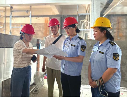今年廈門市預(yù)計投入3490萬元,用于學(xué)校食堂改造。圖為市場監(jiān)管部門工作人員在一學(xué)校食堂升級改造現(xiàn)場幫扶指導(dǎo)。