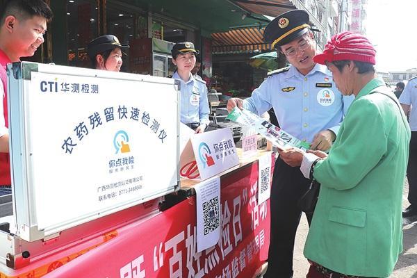 近日,廣西壯族自治區(qū)防城港市市場(chǎng)監(jiān)管局聯(lián)合東興市市場(chǎng)監(jiān)管局開展“你點(diǎn)我檢 服務(wù)惠民生”暨“百姓點(diǎn)檢日”活動(dòng),共同走進(jìn)東興市江平鎮(zhèn)民族市場(chǎng),通過(guò)科普宣傳、現(xiàn)場(chǎng)快檢、監(jiān)督抽檢等形式,為公眾的“菜籃子”安全保駕護(hù)航。