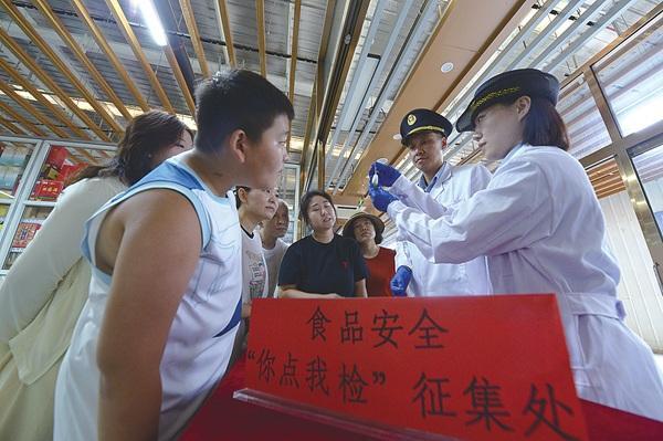近日,北京市通州區(qū)市場監(jiān)管局將“你點(diǎn)我檢”工作臺(tái)搬進(jìn)小街宏興農(nóng)貿(mào)市場,向過往消費(fèi)者征集想要抽檢的食材,現(xiàn)場進(jìn)行快速檢測并當(dāng)場公布檢測結(jié)果。