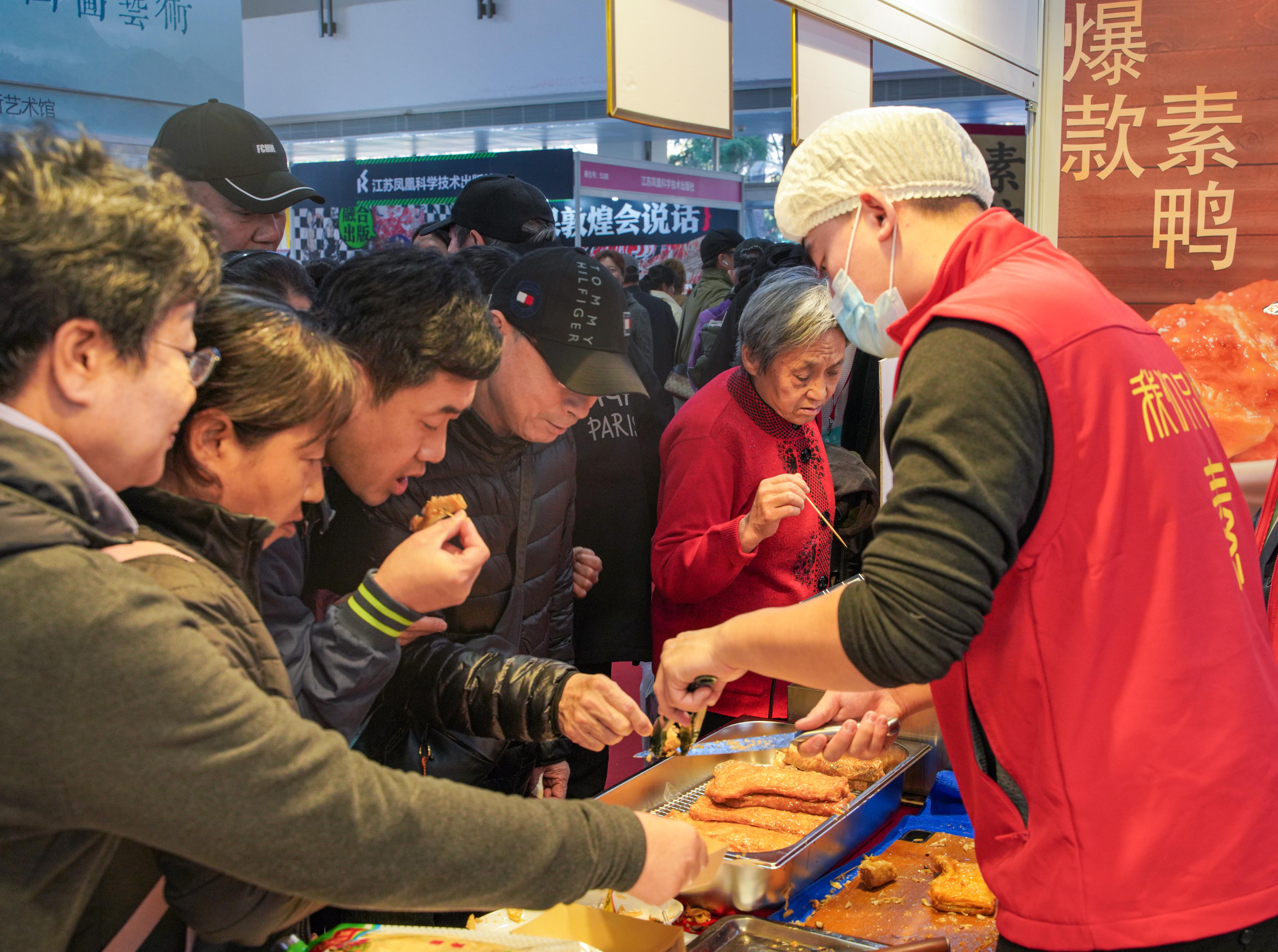 消費(fèi)者品嘗素鴨。