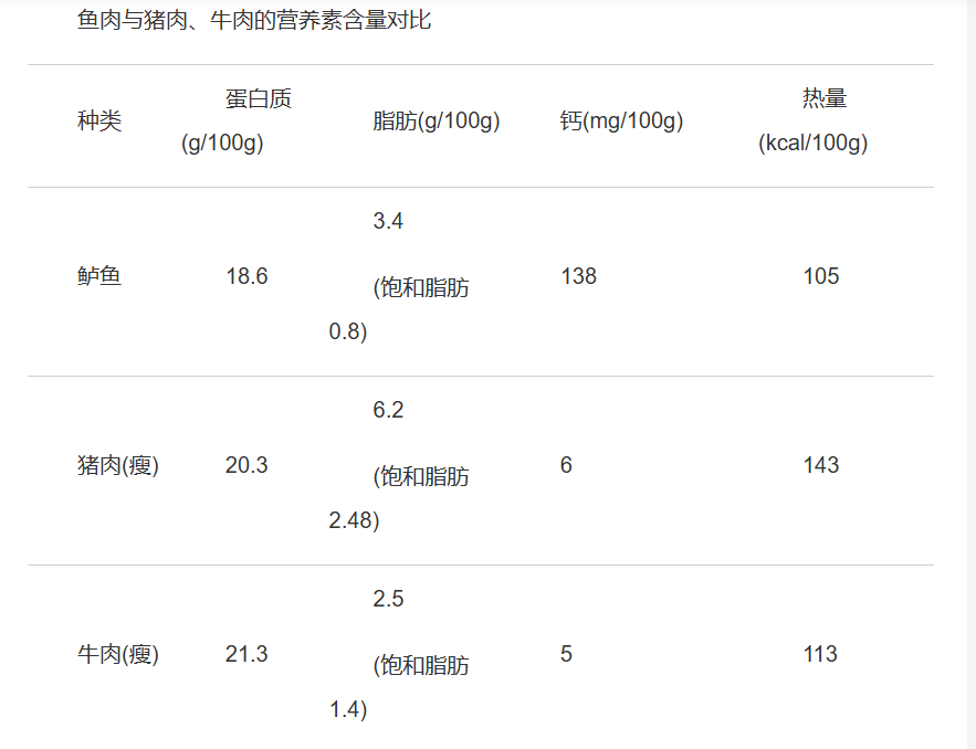 魚肉作為“白肉”的一種,比起豬牛羊肉來說,熱量和飽和脂肪的含量更低,鈣等礦物質(zhì)的含量相對(duì)更高,可以作為減重、減脂期的優(yōu)質(zhì)蛋白質(zhì)來源。