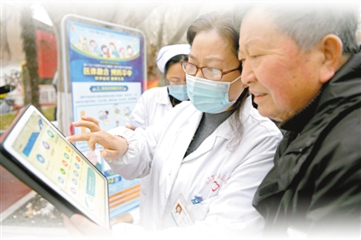 2020年12月2日,安徽理工大學第一附屬醫(yī)院醫(yī)護人員走進淮南市田家庵區(qū)洞山社區(qū),指導老年患者使用皖事通平臺淮南分站上線的該院互聯(lián)網(wǎng)醫(yī)院應(yīng)用服務(wù),方便老年患者使用手機就醫(yī)問診。 陳 彬攝(影像中國) |