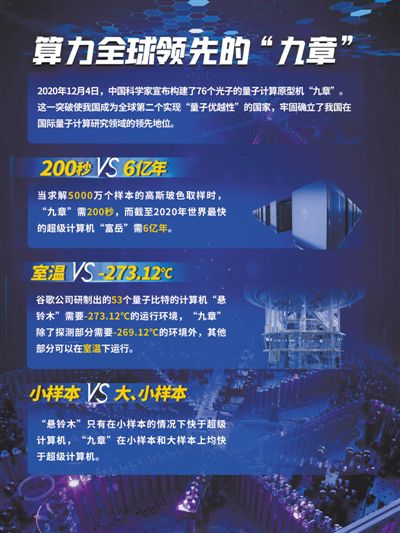 在一個(gè)特定賽道上,200秒的“量子算力”,相當(dāng)于目前“最強(qiáng)超算”6億年的計(jì)算能力。2020年,《科學(xué)》雜志公布的中國(guó)“九章”計(jì)算機(jī)重大突破,讓世界矚目。這臺(tái)由中國(guó)科學(xué)技術(shù)大學(xué)潘建偉、陸朝陽(yáng)等學(xué)者研制的76個(gè)光子的量子計(jì)算原型機(jī)“九章”,推動(dòng)全球量子計(jì)算的前沿研究達(dá)到一個(gè)新高度,在谷歌“懸鈴木”計(jì)算機(jī)之后,再次成功實(shí)現(xiàn)“量子優(yōu)越性”的里程碑式突破。