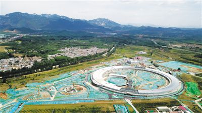 北京懷柔綜合性國家科學中心目前正在加速推進科學設施平臺建設。圖為建設中的高能同步輻射光源(無人機照片)。新華社記者 金立旺攝