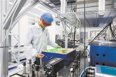 在中國科學院物理研究所懷柔園區(qū)綜合極端條件實驗裝置超快光場物性研究系統(tǒng),科研人員在調(diào)試設備。新華社記者 金立旺攝