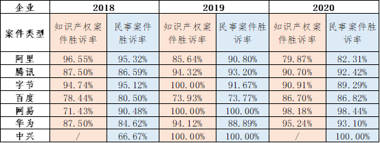 (二)互聯(lián)網(wǎng)企業(yè)知識(shí)產(chǎn)權(quán)案件勝訴率概覽