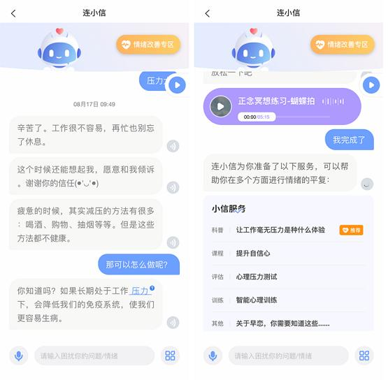 截至目前,連信科技,沉淀了50+億心理樣本數據,搭建2300+個認知圖譜實體模型,整合2000+套心理干預組合技術,擁有200+項知識產權及發(fā)明專利。技術能力和服務能力的層層疊加,讓連信科技實現服務用戶1500+萬人次,解決民眾困擾3000+萬次,干預有效率高達88.57%。