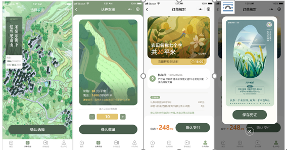 想要認養(yǎng)水稻,只要打開“何家?guī)r云稻米”小程序,簡單四步就能完成:①選擇認養(yǎng)地塊→②確認認養(yǎng)面積→③完成支付→④保存憑證與分享。