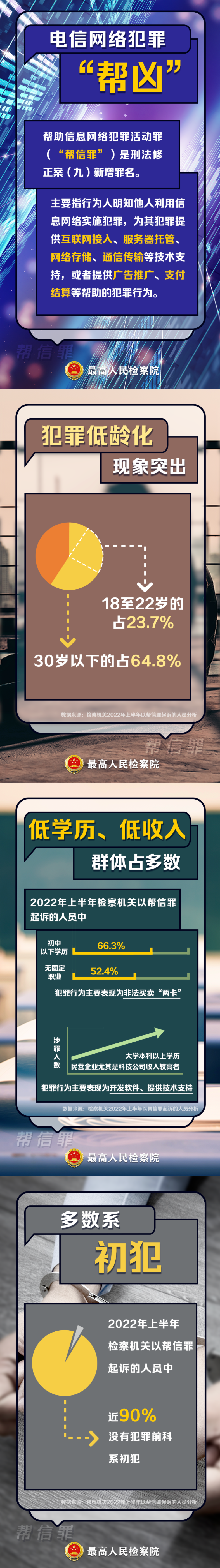 幫信罪是電信網(wǎng)絡(luò)犯罪的重要“幫兇”,目前已成為各類刑事犯罪中起訴人數(shù)排名第三的罪名。近日,最高檢披露的一組辦案數(shù)據(jù)顯示,2022年上半年檢察機(jī)關(guān)起訴幫信犯罪6.4萬人,有哪些問題值得關(guān)注?
