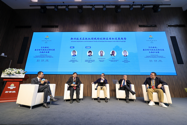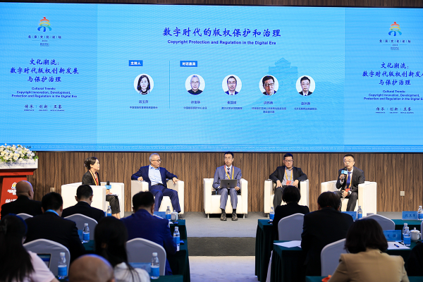 在圓桌對話環(huán)節(jié),與會嘉賓就數(shù)字技術(shù)在版權(quán)領(lǐng)域的應(yīng)用創(chuàng)新及保護等問題進行探討。大家認為,數(shù)字化浪潮下,人工智能和區(qū)塊鏈技術(shù)為傳統(tǒng)版權(quán)保護和版權(quán)作品的創(chuàng)作帶來機遇,在促進版權(quán)創(chuàng)作、運營與保護的同時,數(shù)字技術(shù)的發(fā)展同樣對版權(quán)保護與治理提出了挑戰(zhàn)。與會嘉賓為數(shù)字時代版權(quán)創(chuàng)新發(fā)展與保護治理提供了新思路與新策略。