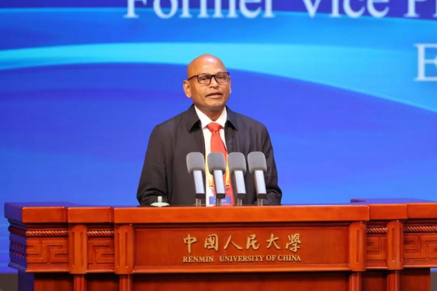 圖為中國人民大學(xué)國家一級教授、原常務(wù)副校長王利明發(fā)布“全球法學(xué)教育合作聯(lián)盟”倡議。