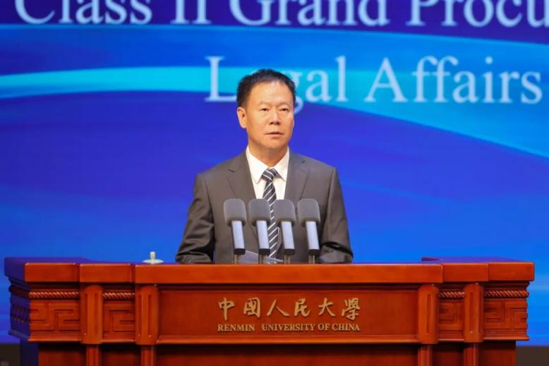 圖為最高人民檢察院二級大檢察官、全國政協(xié)社會和法制委員會副主任陳國慶發(fā)表主旨演講。