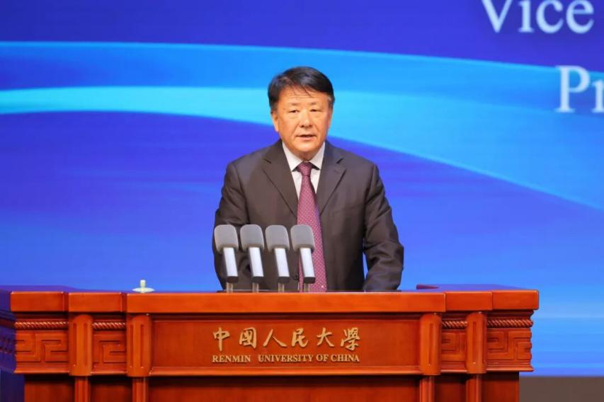 圖為中國人民大學(xué)黨委書記張東剛在開幕式致辭。