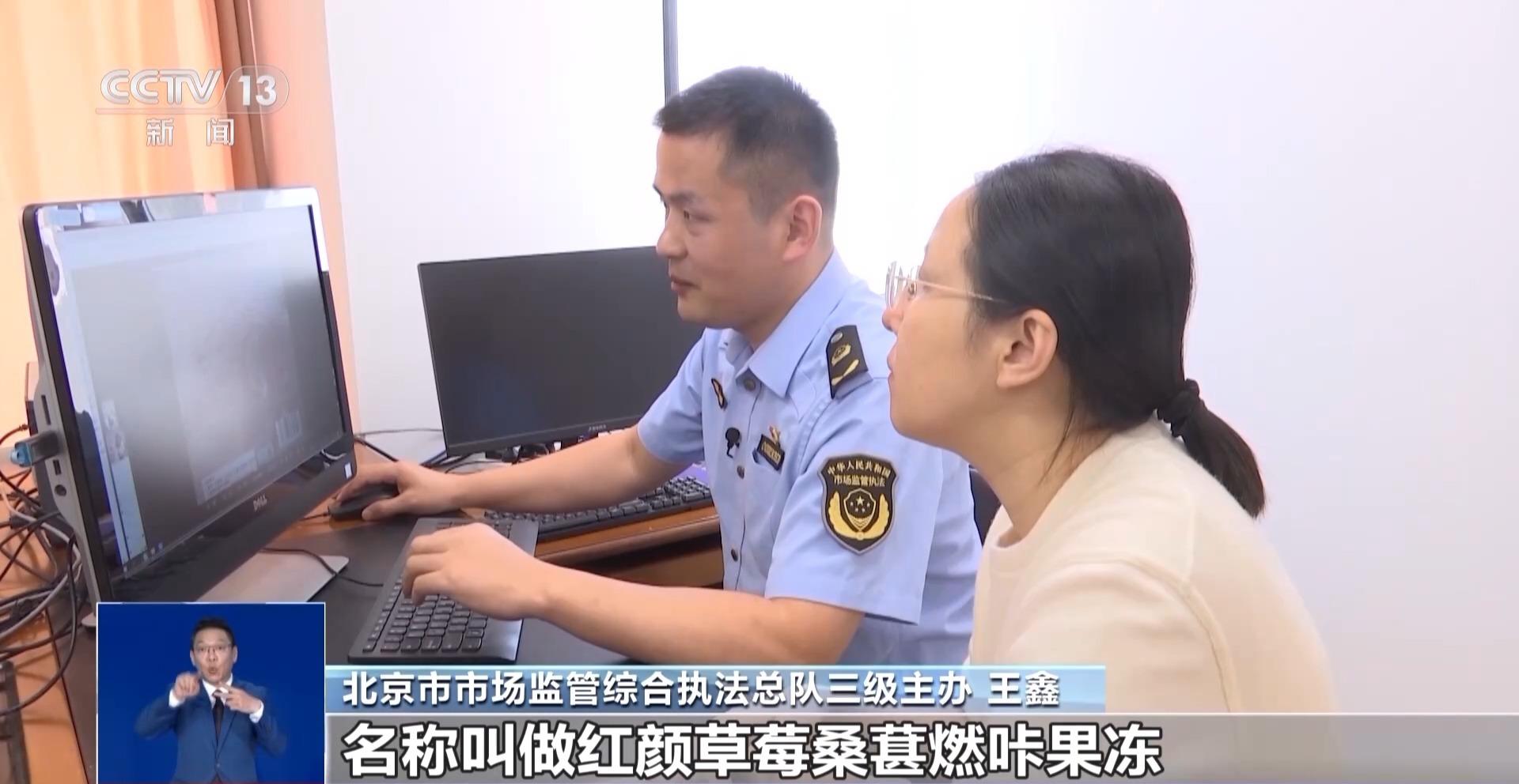 北京市市場(chǎng)監(jiān)管綜合執(zhí)法總隊(duì)三級(jí)主辦 王鑫:我們可以看到這款產(chǎn)品的名稱叫作紅顏草莓桑葚燃咔果凍,它有食品生產(chǎn)許可證的編號(hào),沒(méi)有保健食品的藍(lán)帽子標(biāo)志,也沒(méi)有藥品的生產(chǎn)許可證,它只是一款普通的食品。