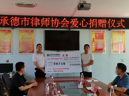在捐贈儀式上,洪繼瑞會長表示,律師隊伍是法律服務的主力軍,不僅積極服務于法治承德建設,而且熱心社會公益活動,承擔社會責任,反哺社會。邢中山、冀鳳學兩位同志的先進事跡集中體現新時代優(yōu)秀共產黨員在最關鍵時刻挺身而出、在人民群眾最需要的時候沖鋒在前的高尚品格和犧牲精神,是廣大律師學習的榜樣。天災無情,律師有愛。面對突如其來的洪災,承德市律師協會心系災區(qū)、積極捐款,給予受災群眾及時的幫助與扶持,助力打贏抗洪救災這場戰(zhàn),也充分彰顯了承德律師的社會擔當與情懷!我們愿為災區(qū)貢獻一份綿薄之力,同社會各界人士一道,助力當地重建美好家園。在任何災難和艱難困苦面前,只要我們堅持黨的領導,心系群眾、全力以赴、攻克難關,就一定能夠克服困難,取得新的更大的勝利。