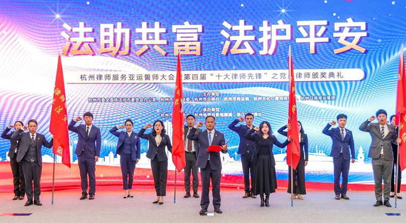 為充分發(fā)揮律師職能優(yōu)勢(shì),進(jìn)一步做好杭州亞運(yùn)會(huì)法律服務(wù)和法治保障工作,助力杭州亞運(yùn)會(huì)順利舉辦,近日,杭州市司法局舉辦律師服務(wù)亞運(yùn)誓師大會(huì)暨第四屆“十大律師先鋒”之黨員律師頒獎(jiǎng)典禮。