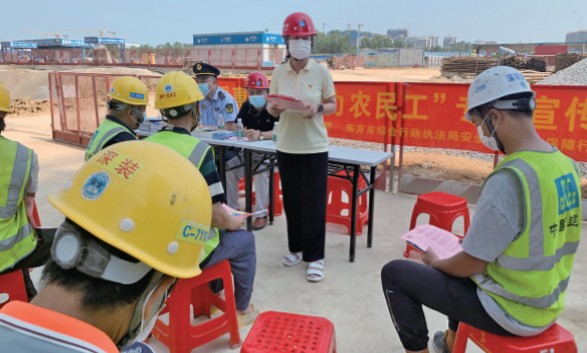 這樣的討薪案,丁明已經(jīng)處理了很多。在安徽,她長期負(fù)責(zé)牽頭組織全省各級(jí)法律援助機(jī)構(gòu)開展農(nóng)民工維權(quán)專項(xiàng)行動(dòng),深知從源頭預(yù)防的重要性。于是到東方市后,她積極開展“民法典進(jìn)工地”等法律宣傳活動(dòng),普及民法典中的相關(guān)法律知識(shí),編印了勞動(dòng)法律知識(shí)問答宣傳手冊(cè),引導(dǎo)農(nóng)民工學(xué)法守法、依法維權(quán)。