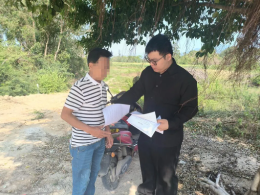 圖為林正豪給當(dāng)事人送達(dá)紙質(zhì)材料