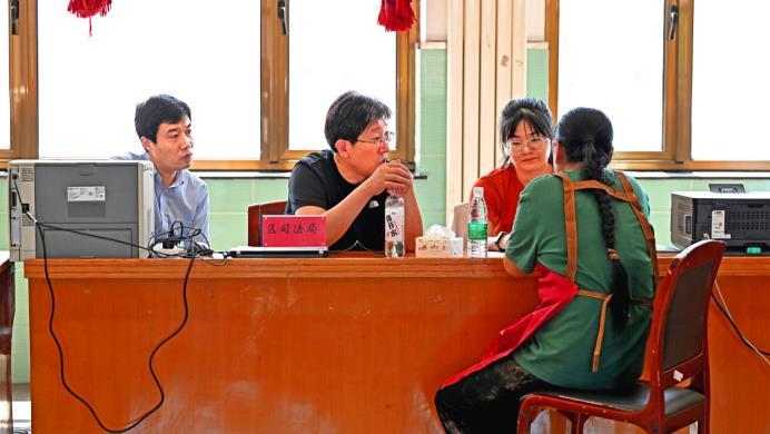 8月6日,北京市懷柔區(qū)司法局工作人員與律師一起走進(jìn)琉璃廟鎮(zhèn),為受災(zāi)群眾提供法律咨詢服務(wù)。法治日報全媒體記者 楊晉峰 攝