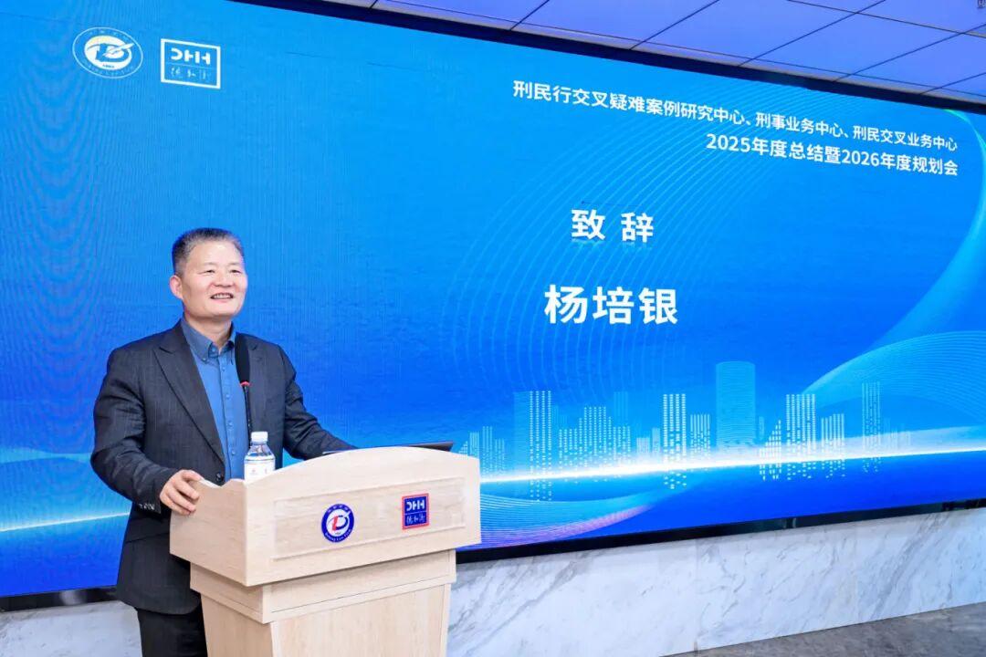 山東德衡律師事務(wù)所高級(jí)權(quán)益合伙人、執(zhí)行總裁、刑民行交叉疑難案例研究中心顧問楊培銀主任在開幕致辭時(shí)對(duì)山東大區(qū)業(yè)務(wù)中心尤其是三大中心的活動(dòng)表示充分肯定,對(duì)中心在2025年取得的案件成果、團(tuán)隊(duì)建設(shè)及社會(huì)影響力提升等方面給予高度評(píng)價(jià),倡導(dǎo)關(guān)注跨領(lǐng)域協(xié)同研究在應(yīng)對(duì)復(fù)雜案件中的實(shí)踐價(jià)值。他希望三大中心2026年在復(fù)雜案件應(yīng)對(duì)與創(chuàng)新法律服務(wù)領(lǐng)域持續(xù)引領(lǐng)行業(yè)方向。