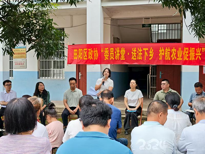 圖為百色市政協(xié)委員班雁霞到百色市田陽區(qū)坡洪鎮(zhèn)郎含村開展“委員講堂·送法下鄉(xiāng) 護(hù)航壯鄉(xiāng)促振興”專項活動。
