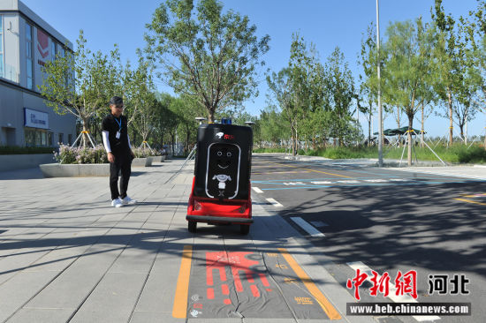 更令人驚嘆的是園區(qū)內(nèi)各式各樣的“黑科技”。首先,行駛在園區(qū)道路上的是正在進(jìn)行測試的新能源無人汽車,車輛在道路上自主行駛,平穩(wěn)安全,秩序井然。除此之外,還有無人配送機(jī)器人、無人售賣車等。