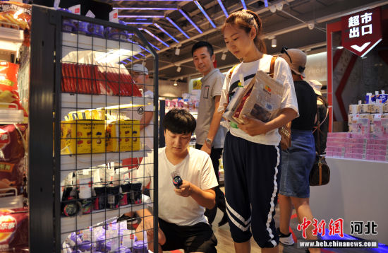 顧客在無人超市內(nèi)選購商品。
