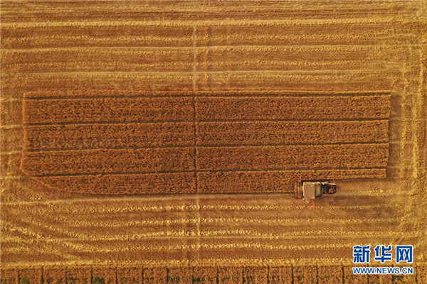 6月13日,雄安新區(qū)大王鎮(zhèn)小王村村民在收獲小麥(無人機(jī)拍攝)。 近日,雄安新區(qū)小麥陸續(xù)成熟,當(dāng)?shù)卮迕駬屪マr(nóng)時(shí)進(jìn)行收獲。 新華社記者 邢廣利 攝