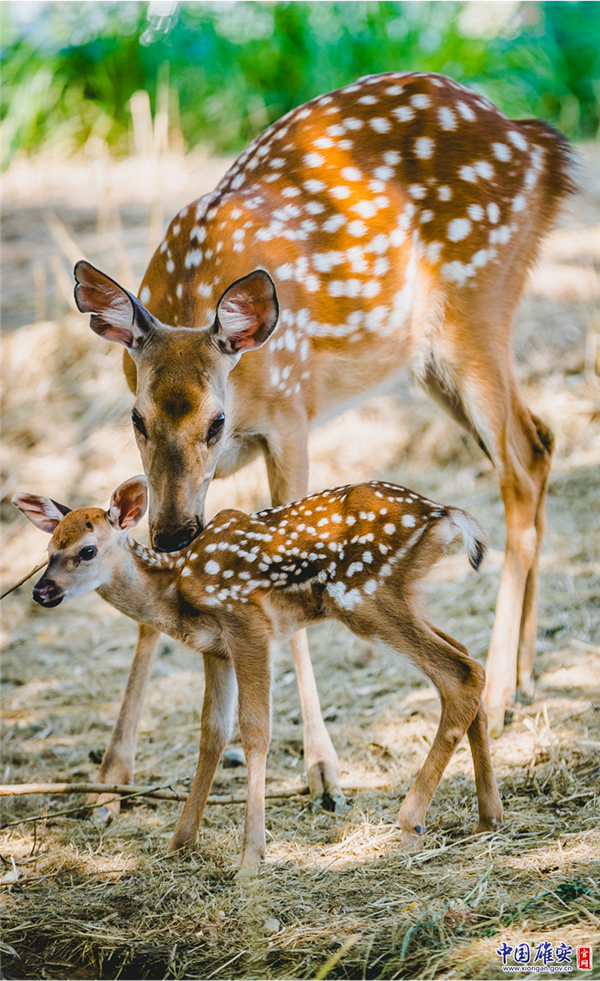 梅花鹿“安安”和“女兒”。中國雄安官網(wǎng)記者馬夢迪 攝