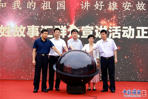 領(lǐng)導(dǎo)嘉賓上臺觸摸啟動球,共同啟動“我和我的祖國——講好雄安故事”365百姓故事匯群眾宣講活動。中國雄安官網(wǎng)記者馬夢迪 攝