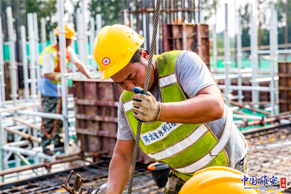 白洋淀引黃大樹劉泵站工程施工現(xiàn)場,新區(qū)建設(shè)者為了新區(qū)的明天更加美好,冒著酷暑炎熱,默默付出,他們是值得敬佩的人。中國雄安官網(wǎng)記者馬夢迪 攝