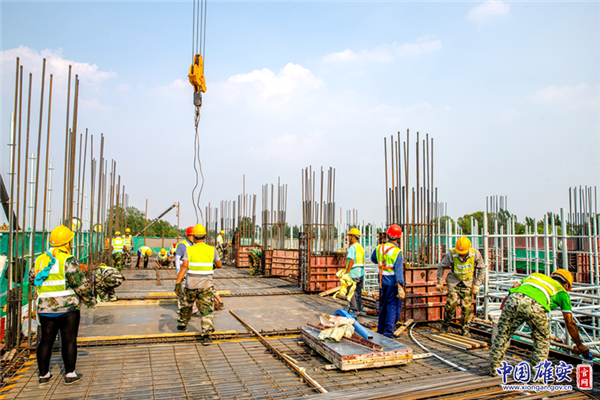 白洋淀引黃大樹劉泵站工程施工現(xiàn)場,新區(qū)建設(shè)者冒著酷暑炎熱,辛苦付出,確保按時完成工作任務(wù)。中國雄安官網(wǎng)記者馬夢迪 攝