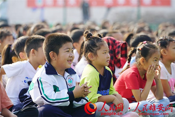 圖為安新縣第二小學的學生正在觀看演出。劉師豪 攝