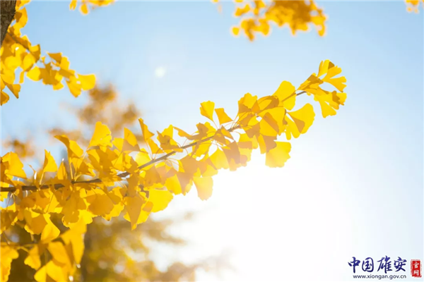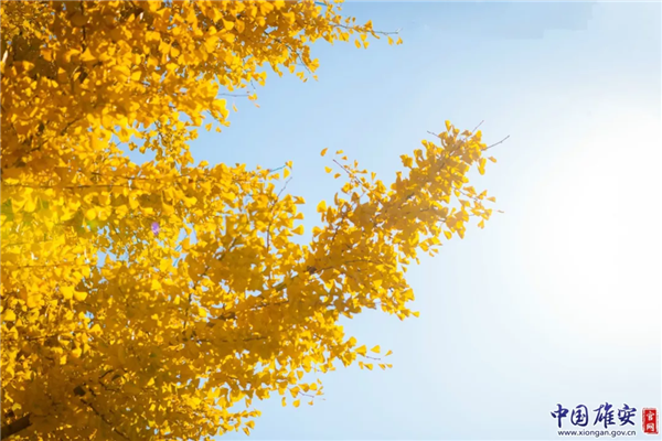 晴朗秋日里,黃燦燦的銀杏葉引人注目。中國雄安官網(wǎng)馬夢迪 攝