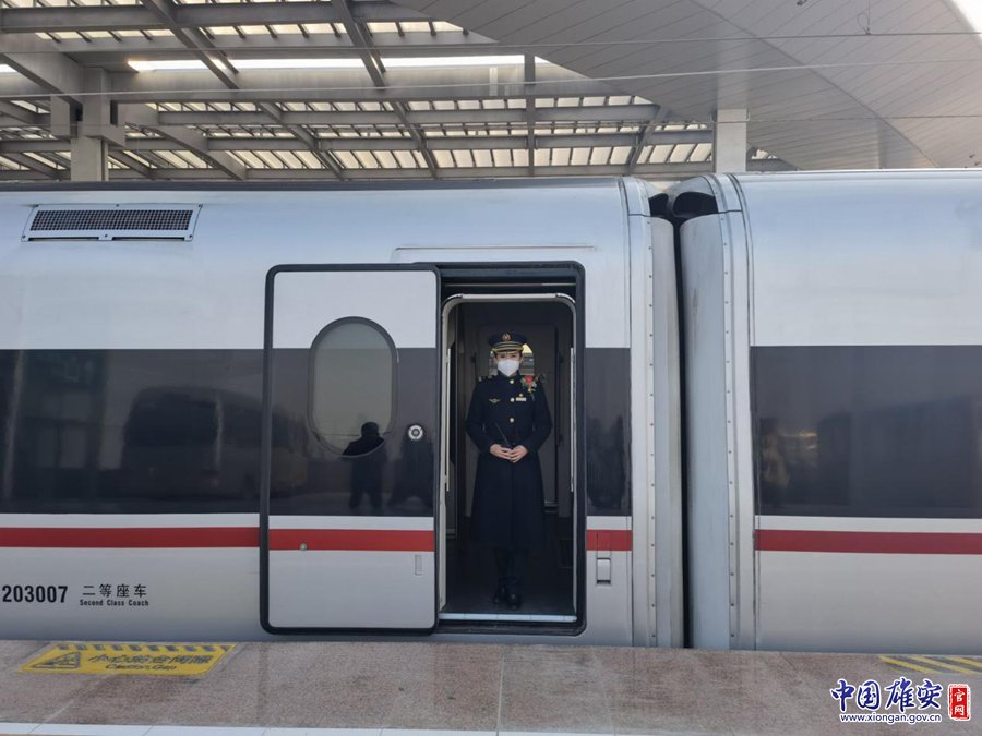 12月27日,乘務員在雄安開往北京西的C2702次列車旁迎接旅客上車。劉東堯 攝