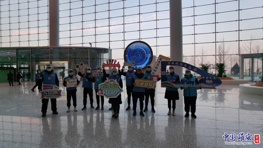 12月27日,志愿者在雄安站迎接旅客進站。劉東堯 攝